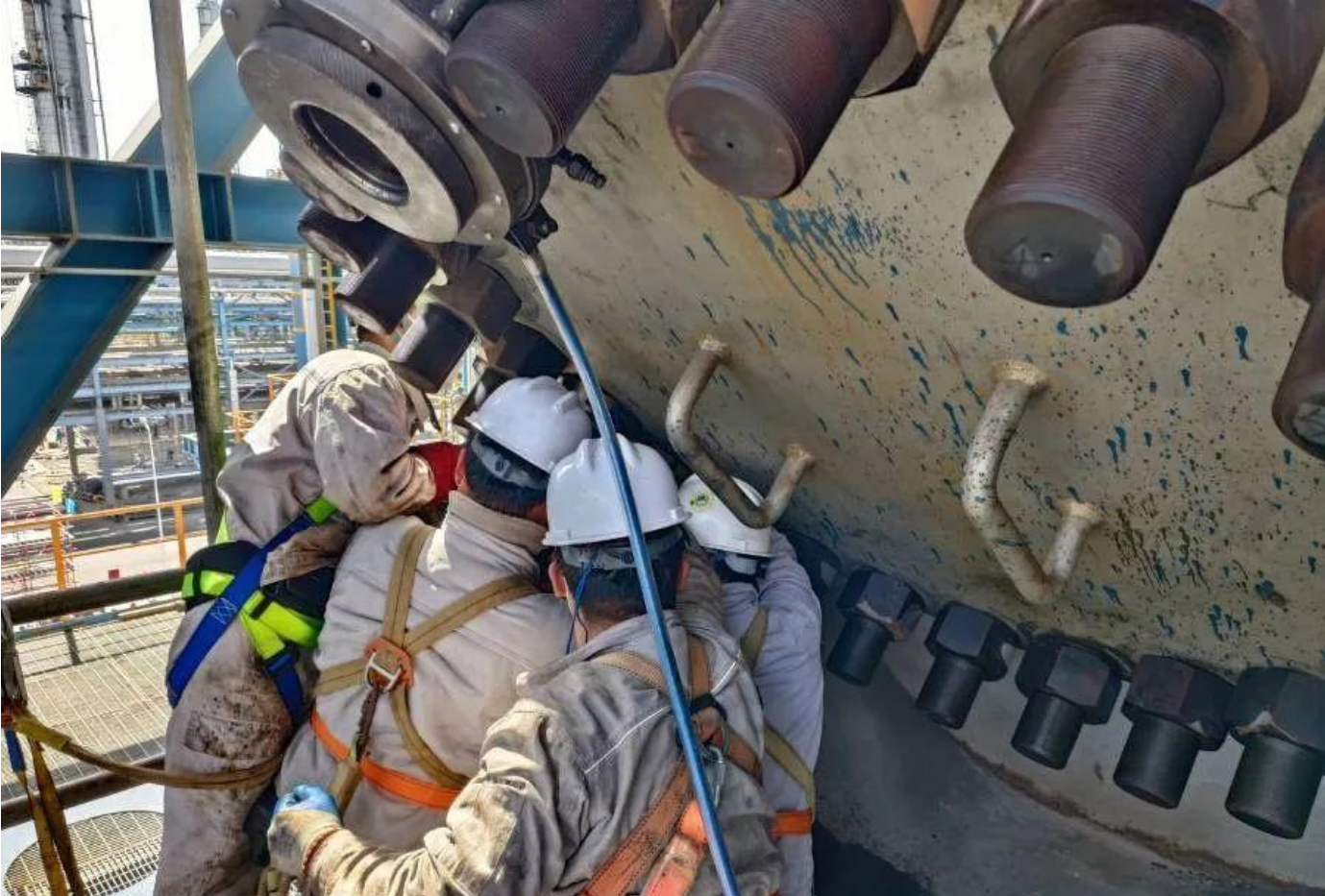 首先在拉伸預(yù)緊前應(yīng)該檢查螺栓和螺母表面是否有銹蝕或者顆粒雜質(zhì)粘附,清除雜物、清洗螺栓銹蝕并潤滑。檢查葉輪和軸承孔的匹配性。接下來安裝螺栓拉伸器。將螺栓拉伸器放置在螺栓上并旋轉(zhuǎn)到正確的位置,確保每個螺栓拉伸器都正確安裝。確保安裝好之后就可以根據(jù)所需拉力調(diào)節(jié)超高壓泵站壓力,升壓拉伸螺栓了。