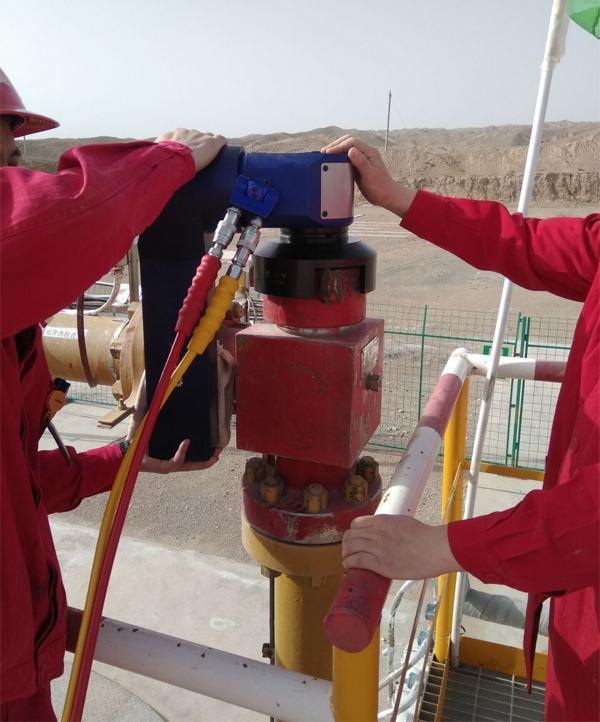 經(jīng)過(guò)我們?cè)搮^(qū)域的現(xiàn)場(chǎng)銷售工程師勘察測(cè)量做出解決方案,BOLTING(博霆)為之專門定制的天然氣單井固定式節(jié)流閥專用液壓扭矩扳手解決了困擾他們難題,得到了用戶的認(rèn)可,施工現(xiàn)場(chǎng)如下: