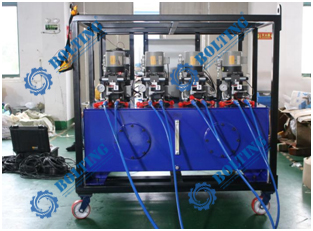 (1) 用于多點同步頂升操作; (2) 專門設計適用于惡劣工況條件下; (3) 圖示為模擬調試階段準備發(fā)貨情況; |