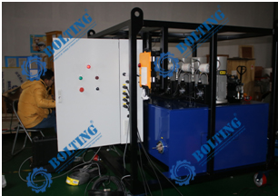 (1) 液壓動力單元配置四臺 HAWE 高 效RZ系列電動泵供油,正常情況下一臺電動泵為1臺液壓油缸供油; (2) 同時可以通過外部管路連接后,替代原有4臺泵中的一臺為其連接的液壓油缸供油; (3) 高頻電磁換向閥用于頂升/縮回控制; (4) 一個 800L 可用液壓油容量的油箱為系統(tǒng)的應用和循環(huán)冷卻提供充足的油量; (5) 配置液壓油冷卻器可以及時冷卻液壓油,防止工作過程中液壓油溫度上升過快; |